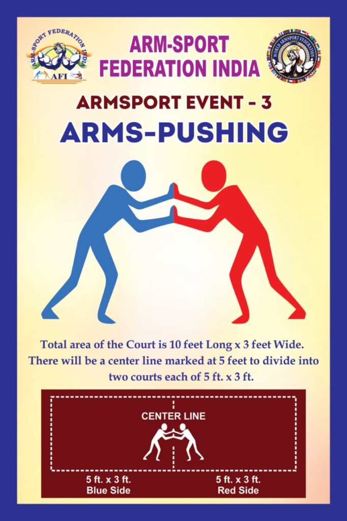 Arm Sport is a contest between two opponents facing each other with their bent elbows placed on a table and hands firmly gripped then attempt to force the opponent’s hand down to the table top. In the early years different names were interchangeably used to describe the same sport: “arm turning”, “arm twisting”, “arm wrestling”, “Indian arm wrestling”, “twisting wrists”, “wrist turning”, “wrist wrestling” and etc.
